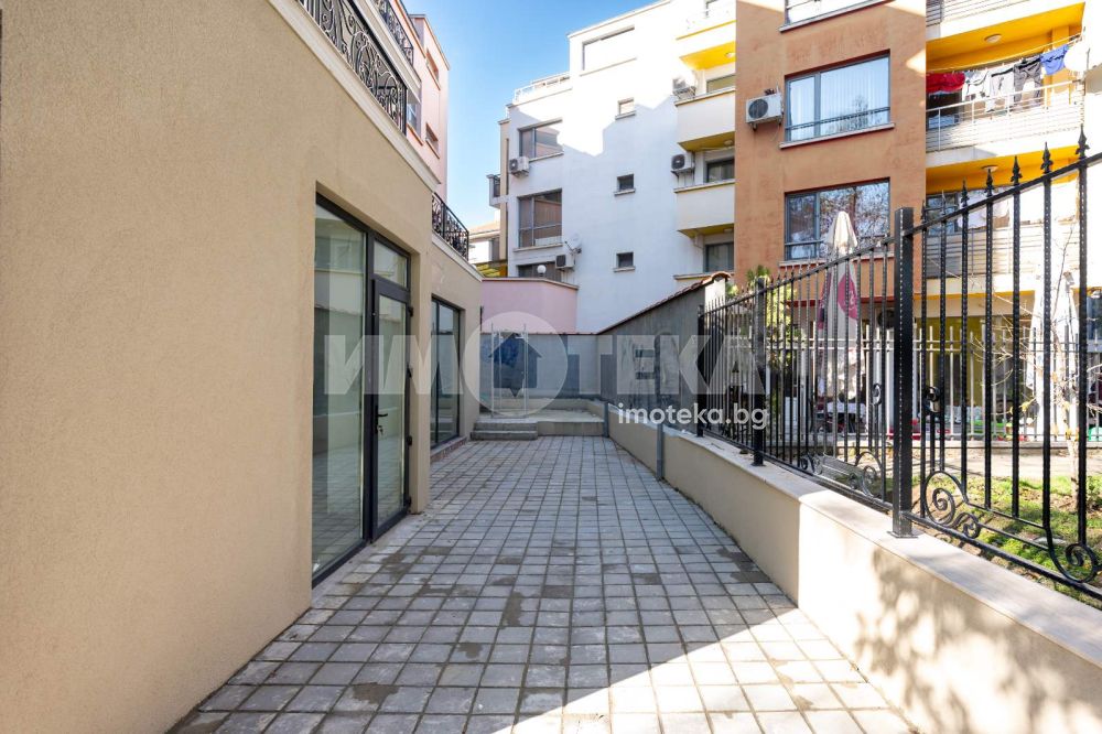 Помещението е с площ от 64 кв.м., с включено допълнително дворно място от 60 кв.м., което може да бъде използвано за вашия бизнес. Мястото е подходящо за: кафе/заведение/сладкарница, офис, банка, кабинет, магазин и др. Самото помещение е на шпакловка и замазка, но ще бъде ремонтирано според изискванията на бъдещия наемател от наемодателя.