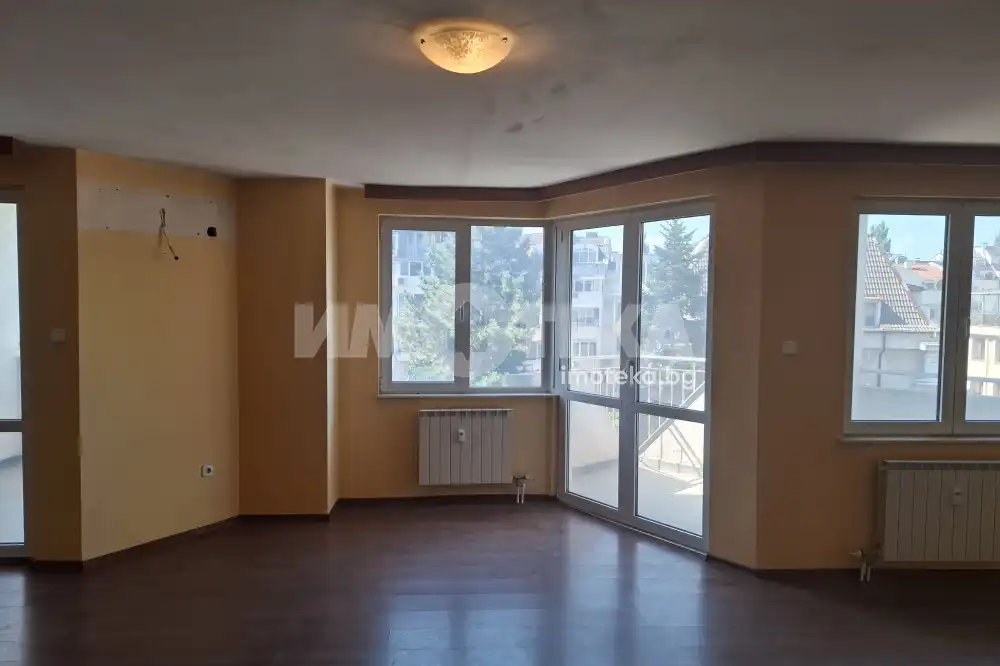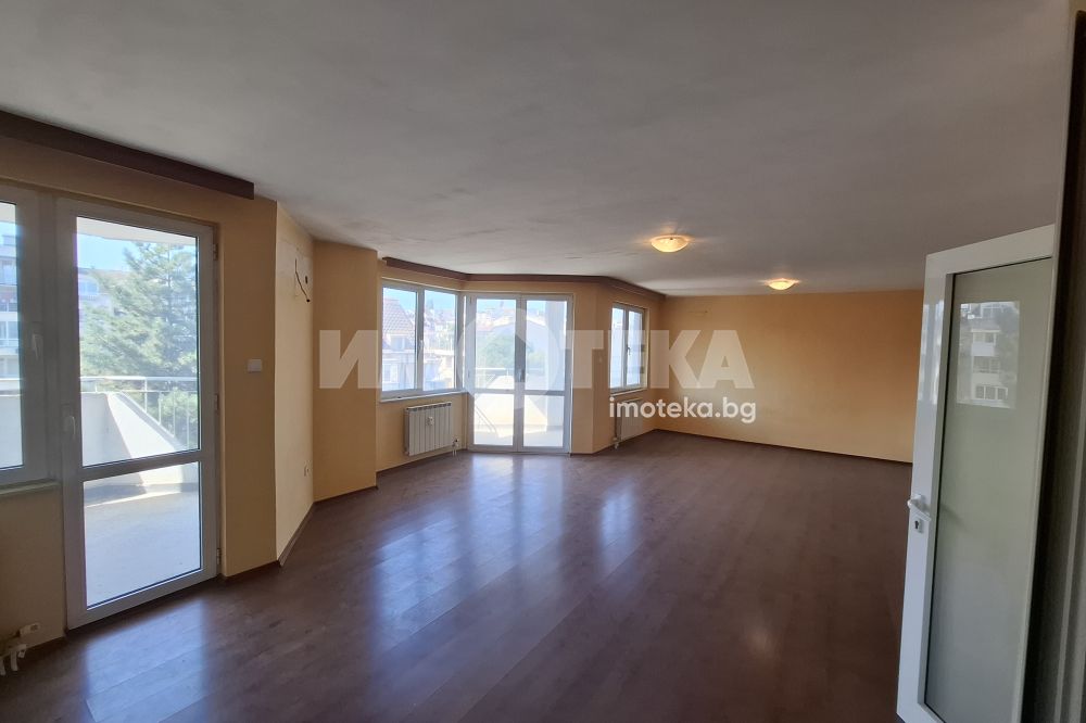 ТОП ЛОКАЦИЯ! ДО УЧИЛИЩЕ РАЙНА КНЯГИНЯ ! Имаме удоволствието да Ви представим тристаен слънчев и приветлив апартамент. Трите тераси не влизат в посочената квадратура, като чистата застроена площ без терасите е 117 кв.м. Състои се от коридор, хол с кухненски бокс с излаз към две южни тераси, перално помещение, самостоятелна тоалетна, баня с тоалетна, две спални с излаз на тераса. Изложение: СЕВЕР-ЮГ.