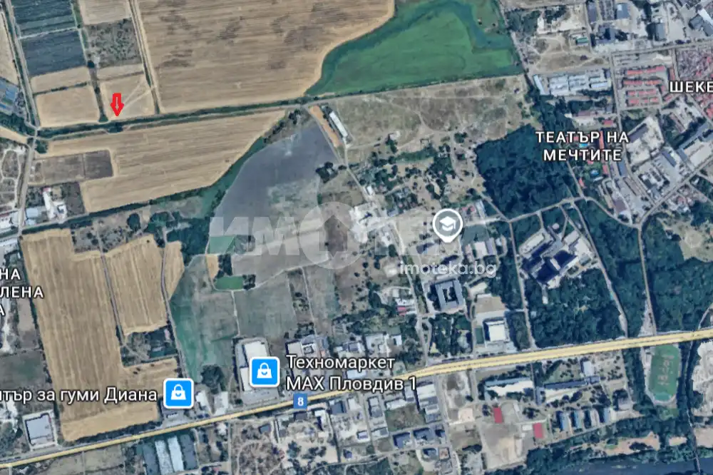 Имотът е в границите на град Пловдив, район Северен, местност "М/У ГОЛЯМО КОНАРСКО И ПАЗАРДЖИШКО ШОСЕ". Намира се зад Център за гуми "Диана", в съседство с няколко големи промишлени обекти.