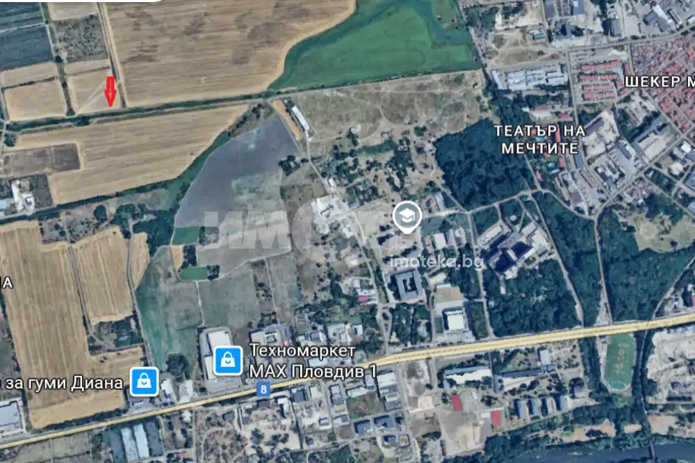 Имотът е в границите на град Пловдив, район Северен, местност "М/У ГОЛЯМО КОНАРСКО И ПАЗАРДЖИШКО ШОСЕ". Намира се зад Център за гуми "Диана", в съседство с няколко големи промишлени обекти.