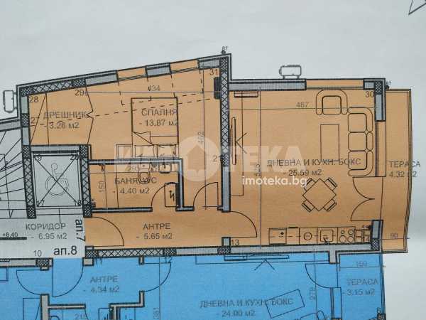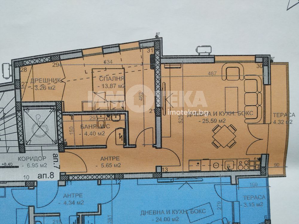 Предлагаме Ви двустаен апартамент състоящ се от просторна всекидневна - 26кв.м. с тераса към нея, една спалня 14 кв.м., антре, баня с тоалетна.