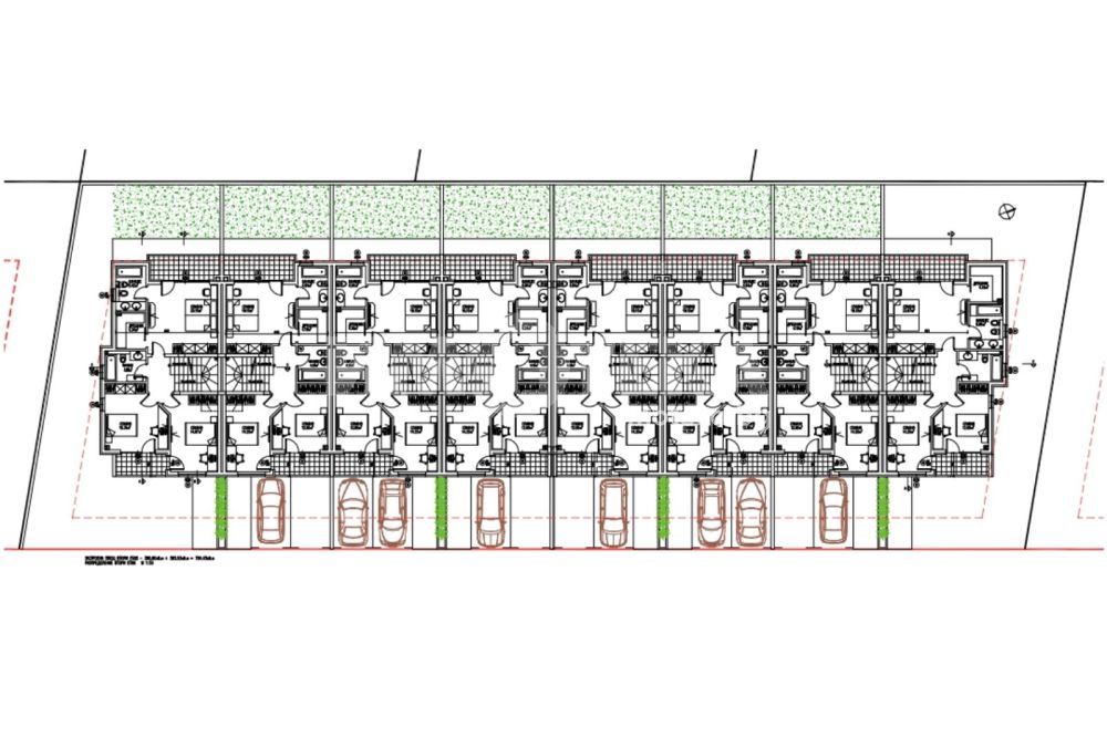 Предлагаме Ви 6 броя двуетажни къщи, находящи се в квартал Коматево, м-ст "Гуджуците". Къщите са на калкан с изложение изток-запад, разполагат с двор - 110 кв.м., като в едната част - 37 кв.м. от двора са разположени две паркоместа и зелени площи. Другата страна на двора с площ 73 кв.м. разполага с веранда и зелени площи.