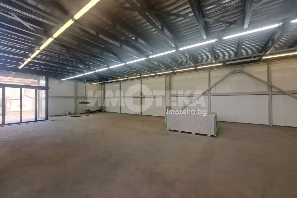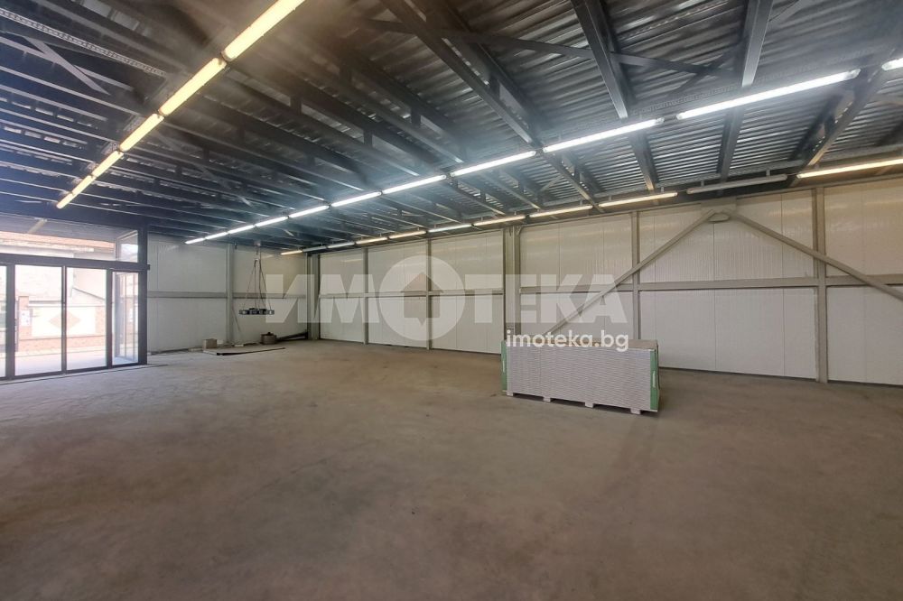 Предлагаме под наем магазин 150 кв. м. чиста площ, 35 кв.м. складово помещение и санитарен възел, височина на помещението 5 м. лед осветление, термопанели, шлайфан бетон. Отделна самостоятелна сграда с дворно място, което също може да се използва, има рампа отзад за зареждане със стока, Отпред има голяма автоматично отваряща се врата.