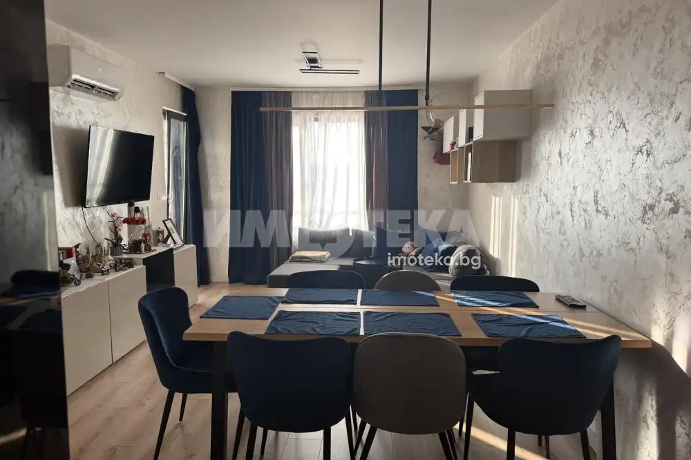 Представяме Ви напълно обзаведен двустаен апартамент в кв. Остромила. Жилището е с площ от 65 кв.м и има следното разпределение - дневна с кухненски бокс, спалня, баня с тоалетна, изнесено мокто помещение в коридора, тераса и отделно избено помещение.