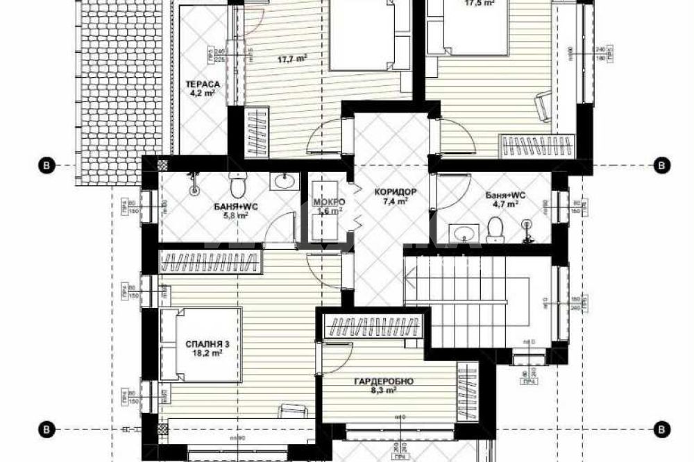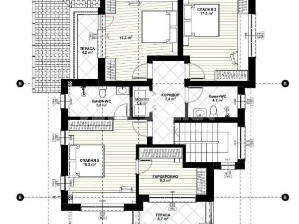 Малък затворен комплекс с 6 самостоятелни двуетажни къщи.Всяка си има двор от 380кв.м. В бъдеще с летни градини и бесетки.