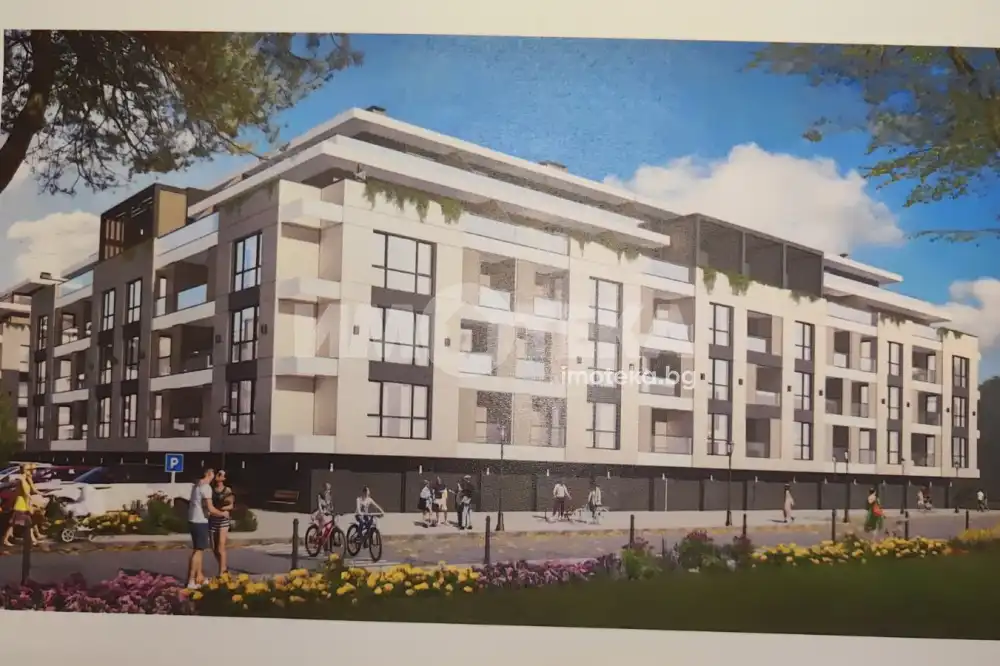 Тристайно жилище със ЗП 103.82 кв.м.+ 12.89 кв.м. общи части от общите части на сградата.Жилището е с изложение запад-север и има следното разпределение: хол с бокс, две спални, две тераси, баня с тоалетна и отделно тоалетна, антре и склад.