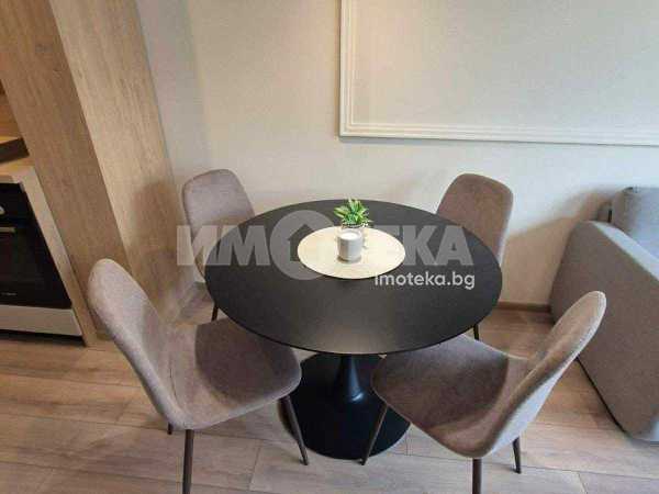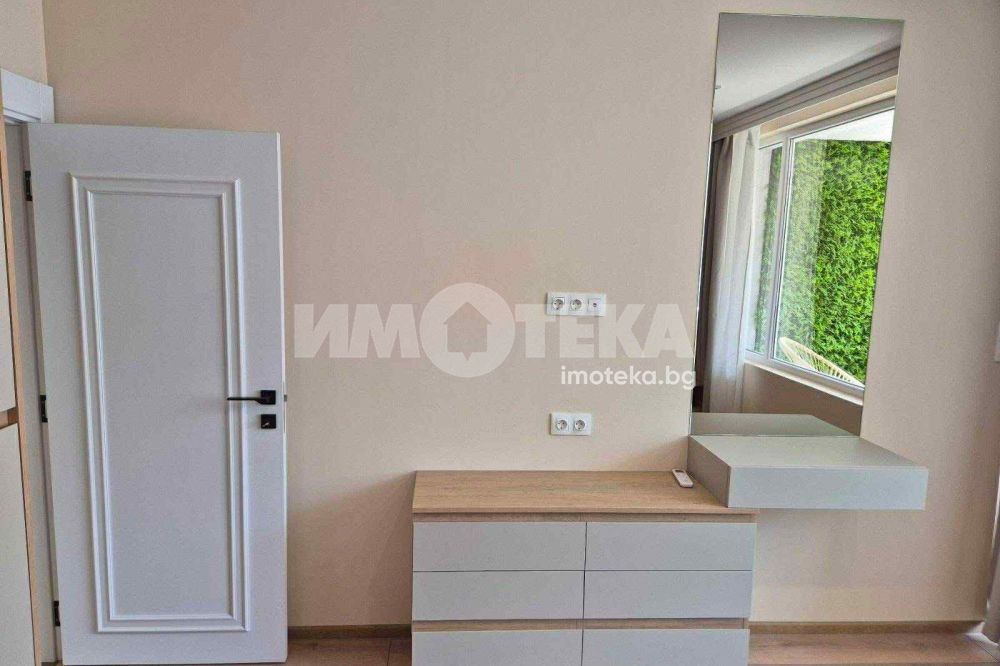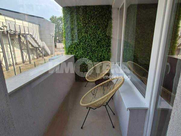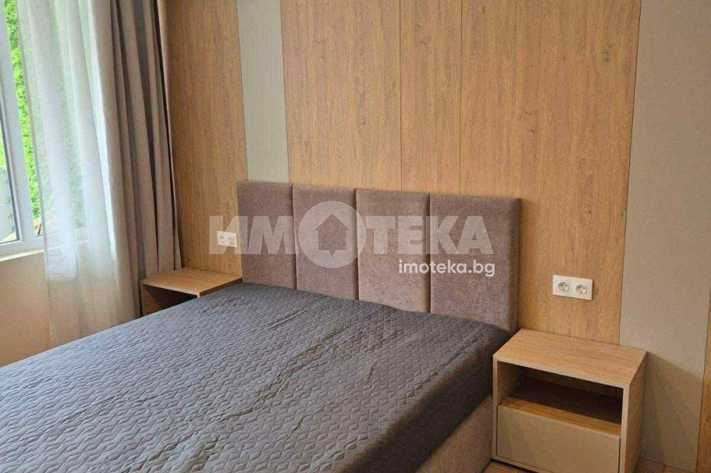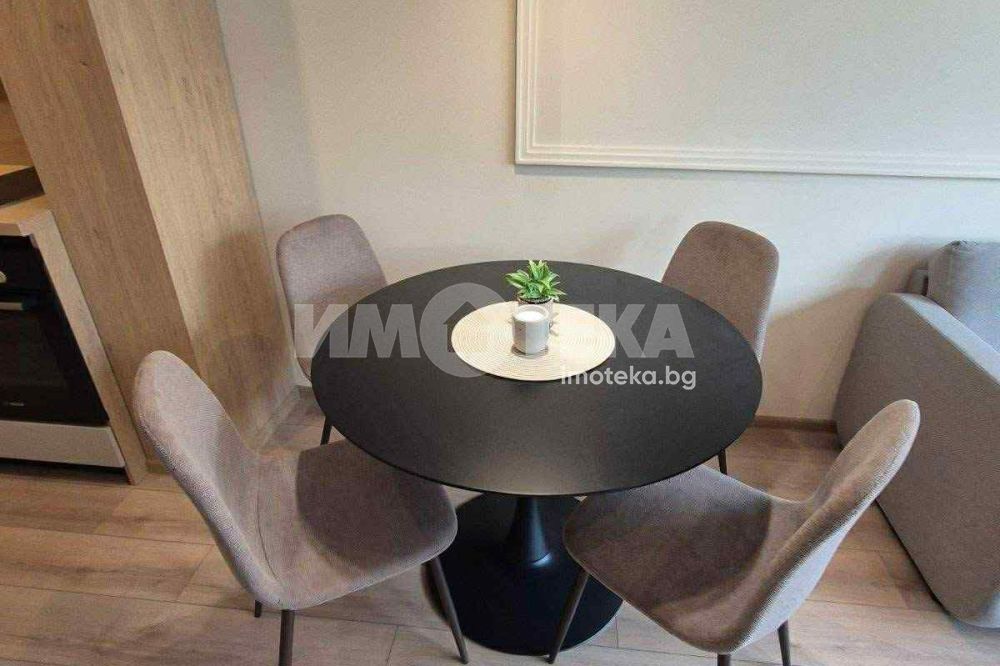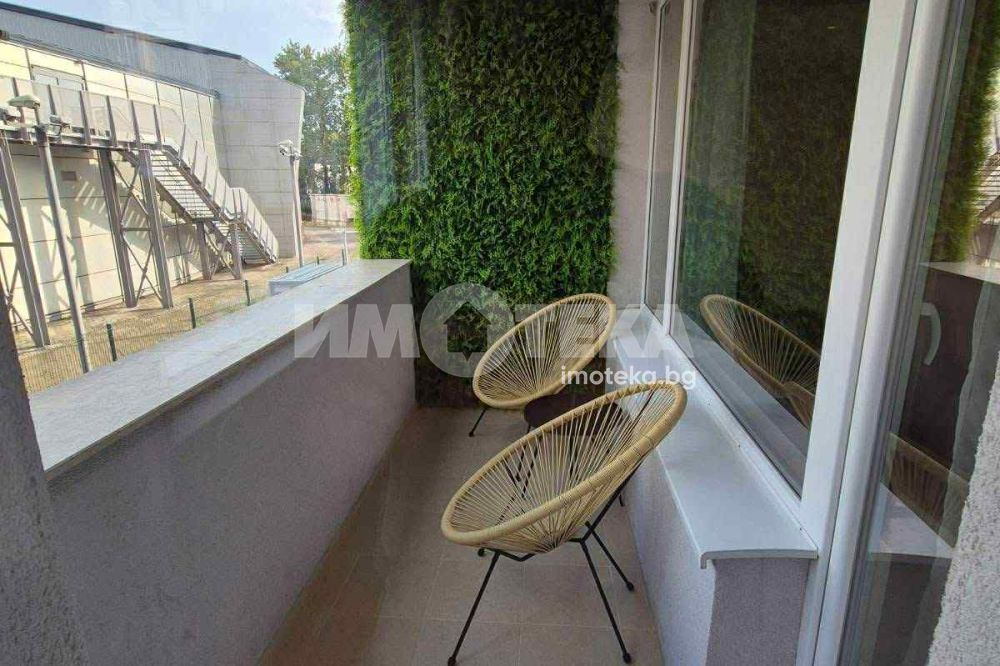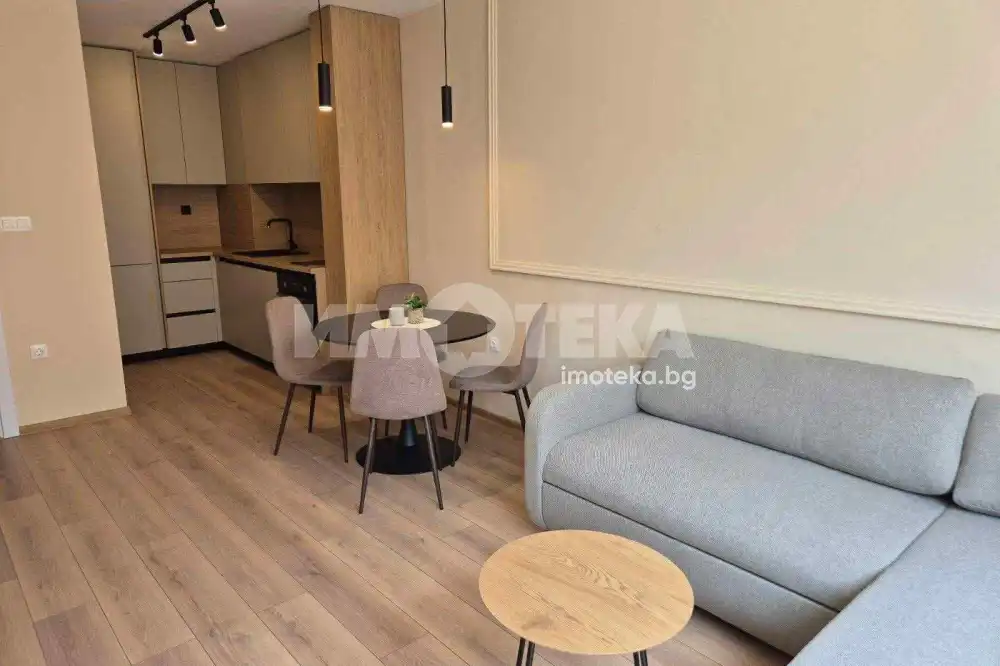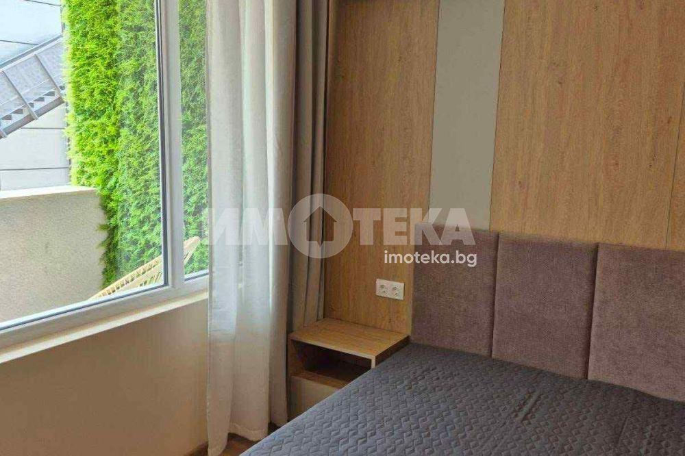Двустаен,обзаведен от първи собственник.Сградата е завършена преди година.В отлично състояние,чисто нови дизайнерски мебели по поръчка.Всекидневна с кухня,спаля,от която се излиза към терасата и баня с тоалетна.За по-голямо удобство има и килер.Има подземно и надземно паркомясто,което е отделно от цената.