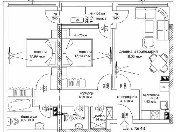 В продажба 3 стаен апартамент 98.9 квадратни метра. С много малък процент общи части. Изложение югоизток.