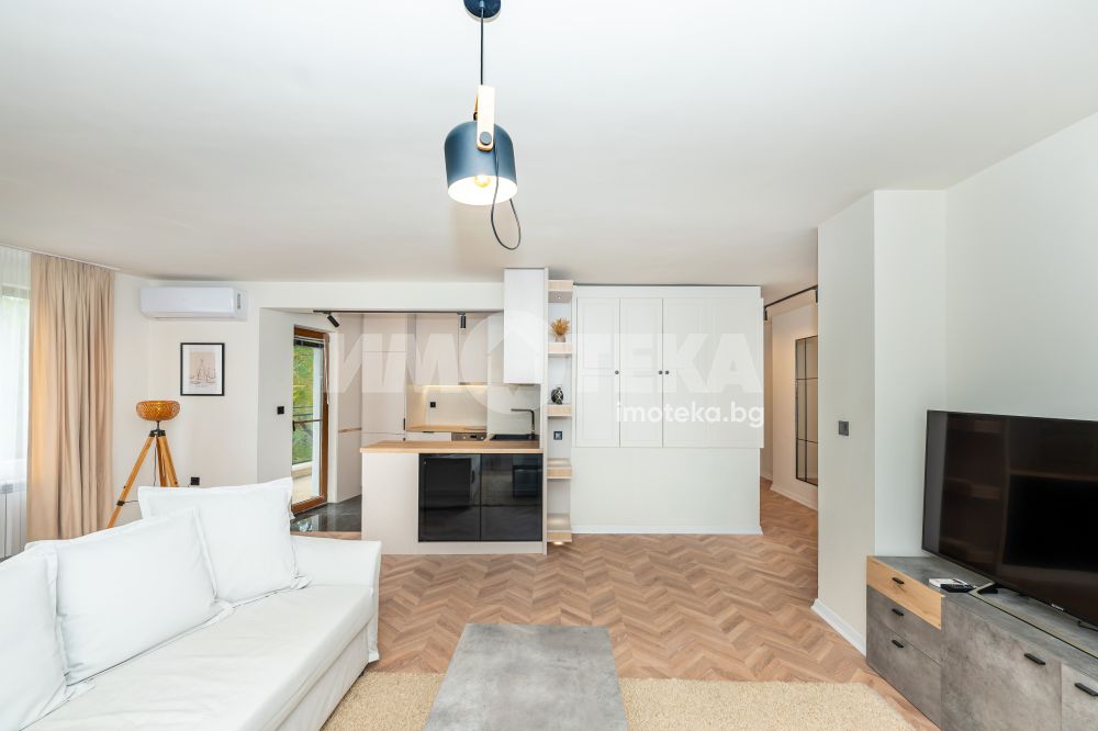 • Обширна дневна с площ от 40 кв.м, с обособени кътове за кухня, трапезария, отдих и работен кът;