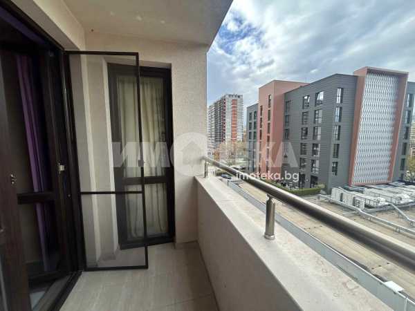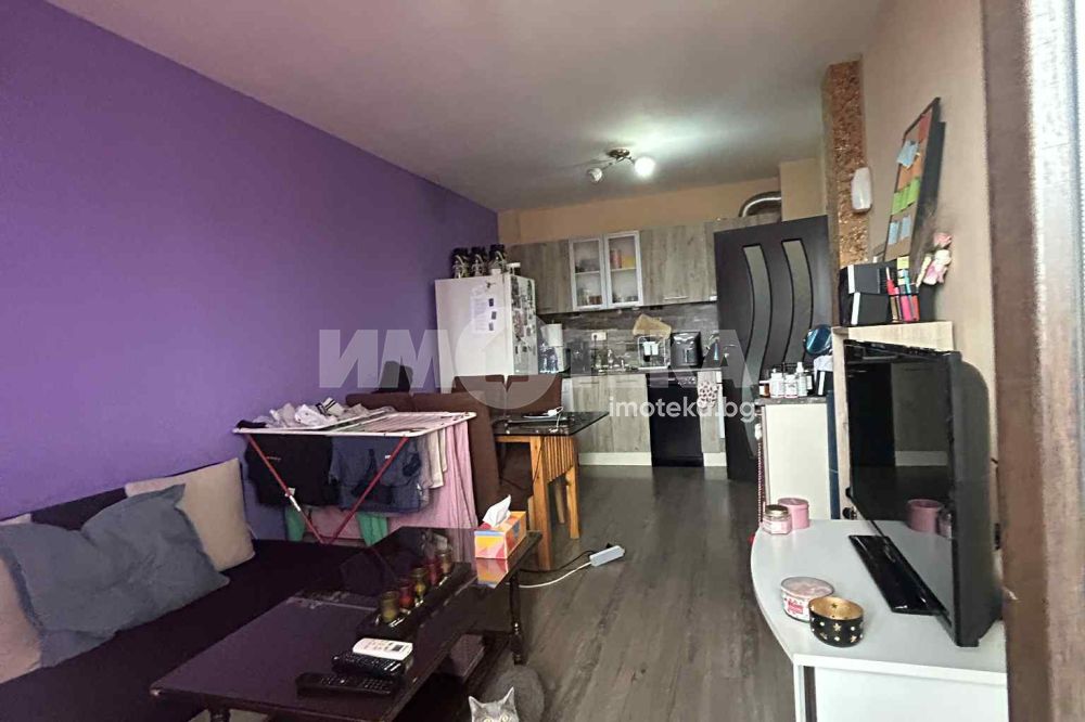 Просторен двустаен апартамент.Ситуиран на пети етаж.Състои се от хол с кухненски бокс,спалня,баня с тоалетна и тераса.Обзаведен от-до.