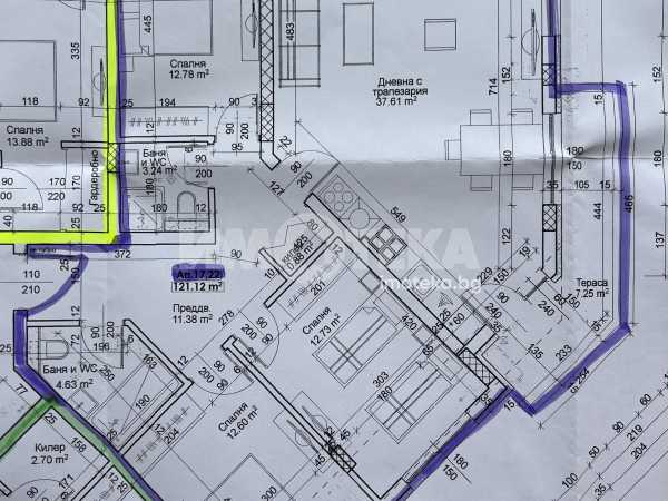 Многостаен апартамент,с площ от 139,45кв.м., от които 121,12 кв.м. чиста площ състоящ се от три спални, просторна дневна с кухненски бокс, килер, две бани с тоалетни, една тераса.