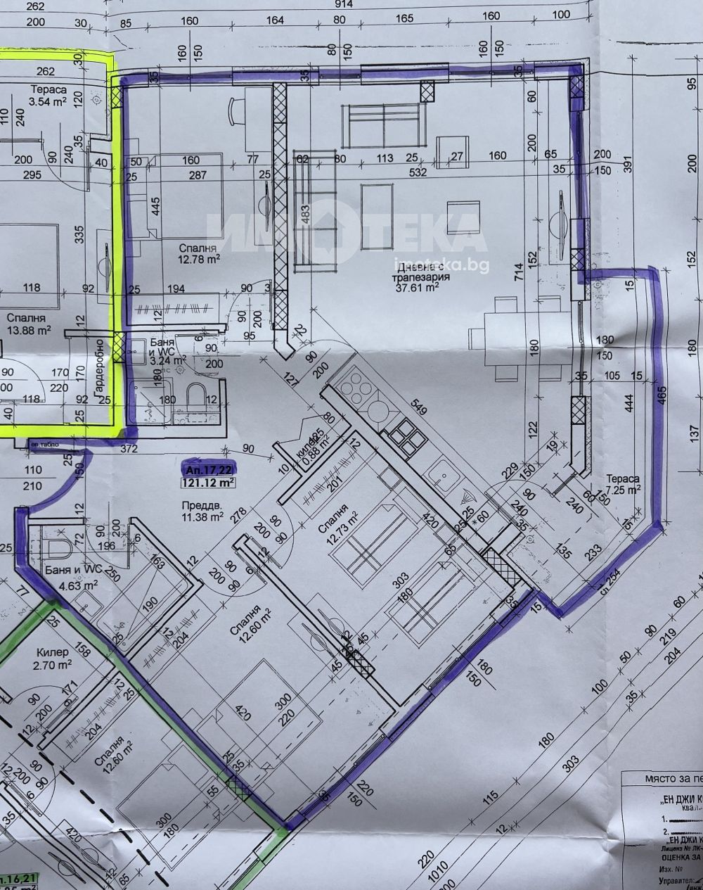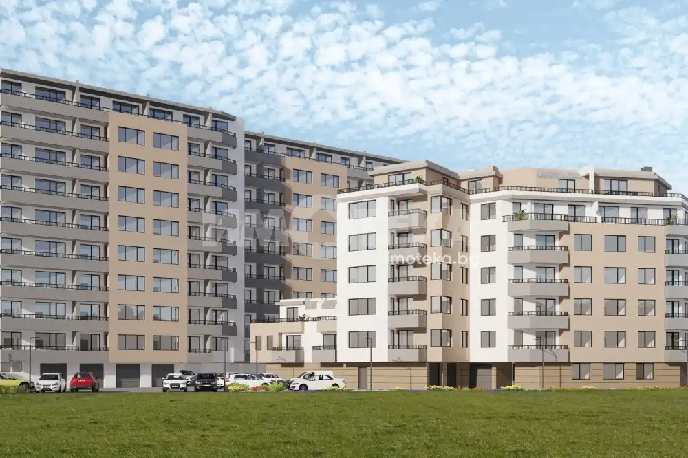 Многостаен апартамент със застроена площ от 121,12 кв.м. с общите части 139,45 кв.м., състоящ се от три спални помещения, просторен хол с кухненска част, санитарни помещения. Издава се на шпакловка и замазка с монтирана блиндирана входна врата.