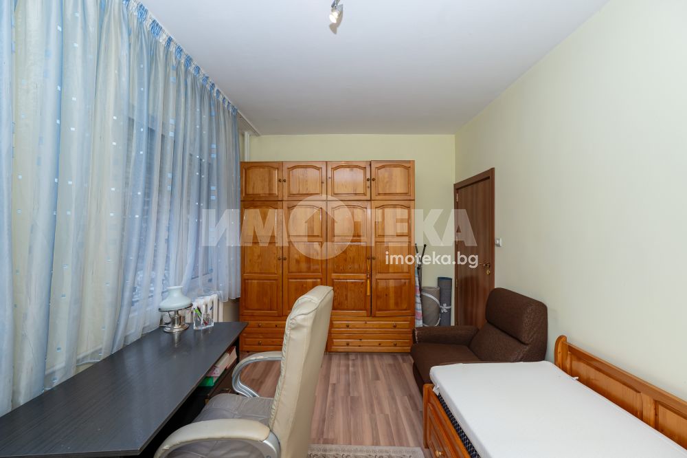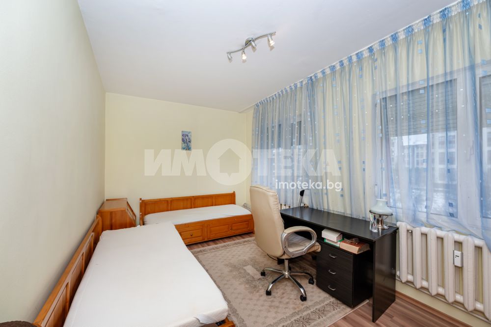 Тристайно панелно жилище, готово за живеене, разположено в добре уреден и предпочитан район. Апартаментът е с функционално разпределение, включващо просторна дневна, две самостоятелни спални, отделна кухня, баня с перално помещение, тоалетна и коридор. Имотът е в много добро състояние, с подменена дограма, обновени подови настилки и поддържани стени, което позволява незабавно нанасяне без допълнителни инвестиции.