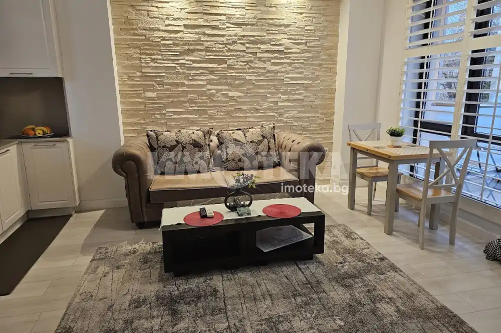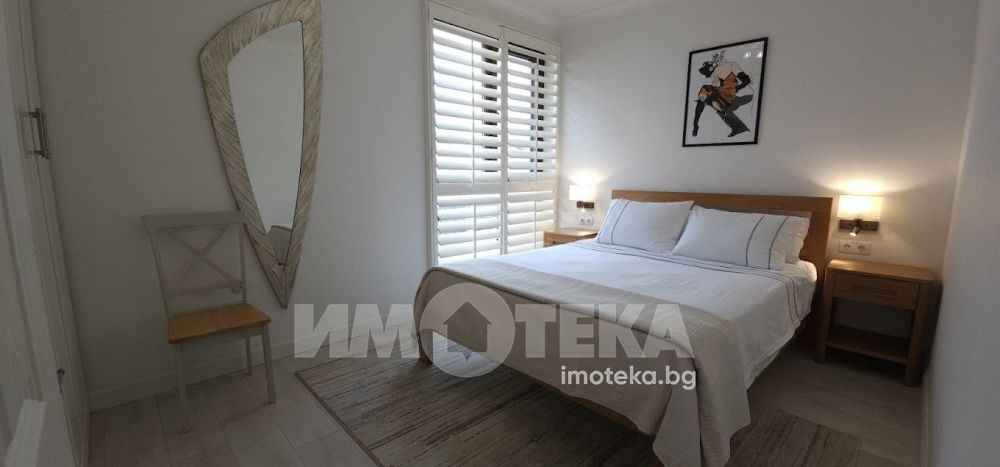 Апартаментът е напълно обзаведен, с източно-западно изложение, разположен на тиха улица. В сградата има девет апартамента.