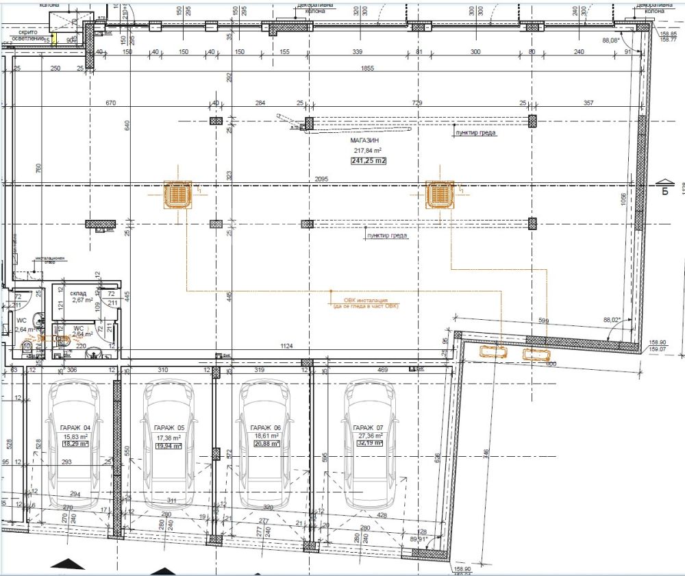 Представяме Ви магазин под наем на главен булевард. Има голяма витрина, с лице на булеварда, като пред него има и удобни места за паркиране. Изключително подходящ е за шоурум. Обединен е с гаражи 05, 06 и 07, като разпределение може да видите в прикачения файл. Общата квадратура на магазина с гаражите е 354,55 кв.м., от които 314,26 чиста площ.