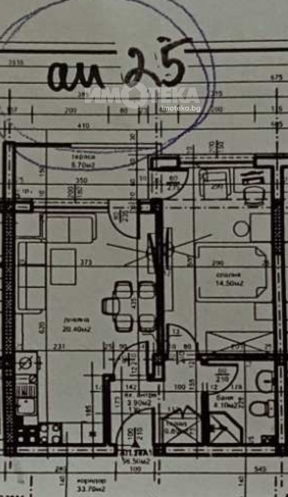 Предлагаме за продажба двустаен просторен апартамент състоящ се от входно антре, дневна с кухненски бокс, спалня, баня тоалетна, склад, и една тераса .