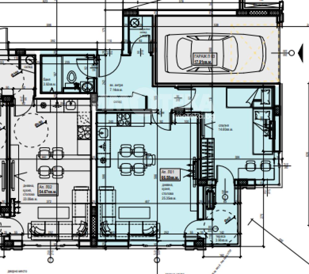 Към апартамента има веранда от 6.71 кв.м. и дворно място от 51.40 кв.м.