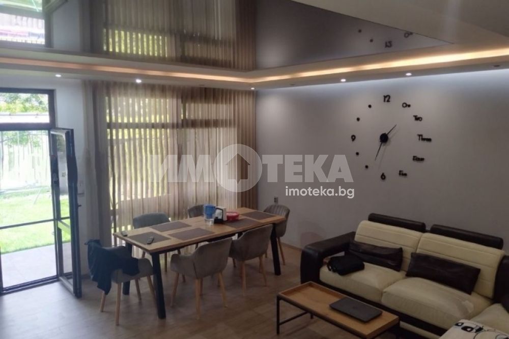 Продаваме луксозно довършена и обзаведена къща, която съчетава елегантност, уют и съвременен комфорт. Разположена е на 2 етажа- 3 спални, просторна дневна с трапезария и кухненски бокс, 2 бани.