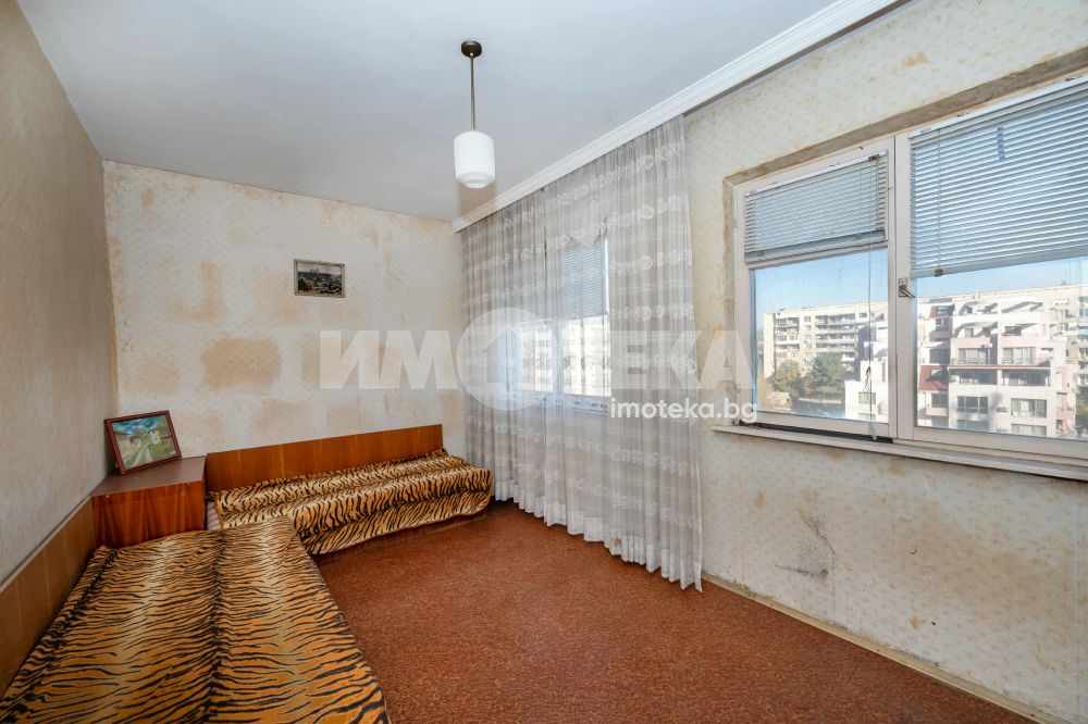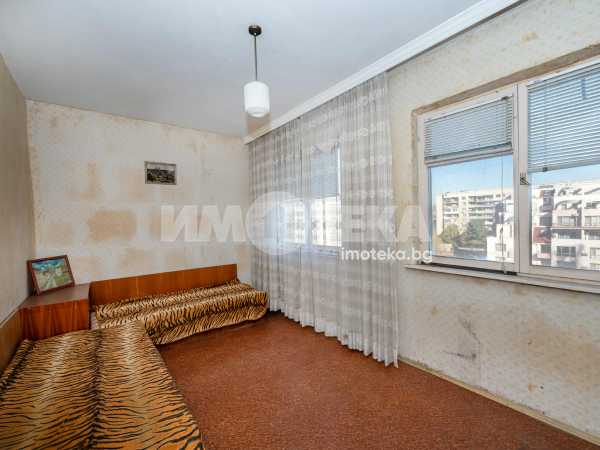 Представяме Ви тристаен апартамент в панелна сграда. Апартаментът е тристаен. Състои се от хол, две отделни, непреходни спални, всекидневна, от която се преминава към обособен кухненски бокс. Към апартамента има две тераси, като по- малката ееусвоена към апартамента и е продължение на кухненския бокс. В апартамента има Г образен коридор, отделно баня с предверие за перално помещение и отделно тоалетна. Изложението на апартамента е север- юг.