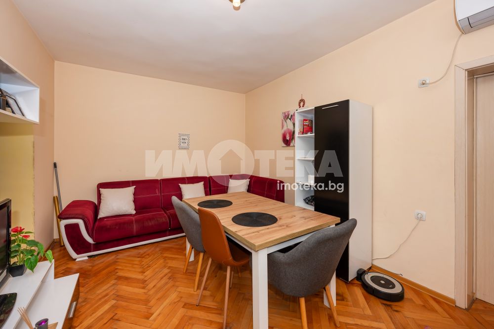 Адрес предлага на Вашето внимание обзаведен, преустроен в тристаен, апартамент до Мол Пловдив! Имотът е на първи етаж в тухлена сграда с чиста площ 58 кв.м. със следното разпределение: хол с преходна спалня , втора спалня и баня с тоалетна . Към Имота има изба 12 кв.м. Изключително бюджетен апартамент на топ локация!