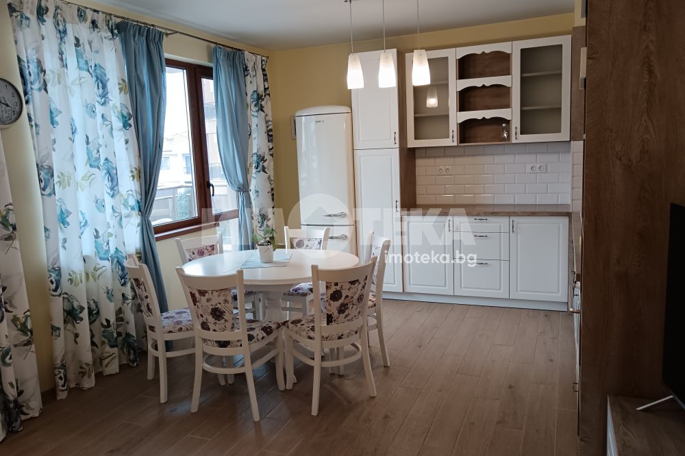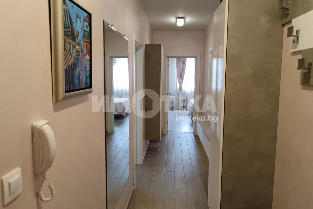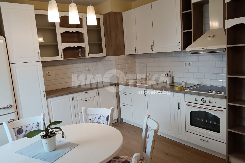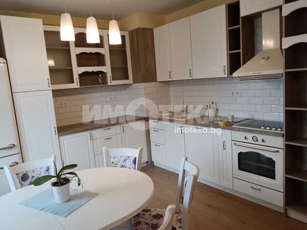 Имотека отдава тристаен апартамент на метри от Гребна база в комплекс Грийн парк. Просторен хол с южно изложение, кухненски кът напълно оборудван с ел. уреди тип Винтидж. Терасата към хола е с градинска мебел . Родителска голяма спалня с излаз на просторна тераса, детска стая, баня с тоалетна. В наемната цена влиза Паркомясто и месечната такса към комплекса.