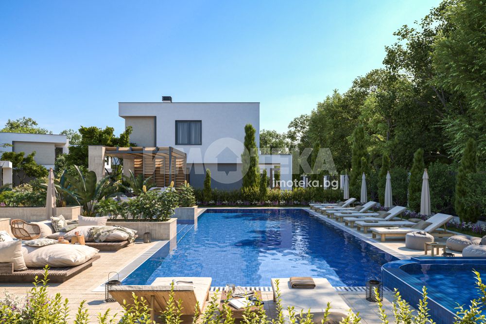 Елегантна вила с градина, част от луксозен комплекс от затворен тип, с индивидуално проектирани къщи .
