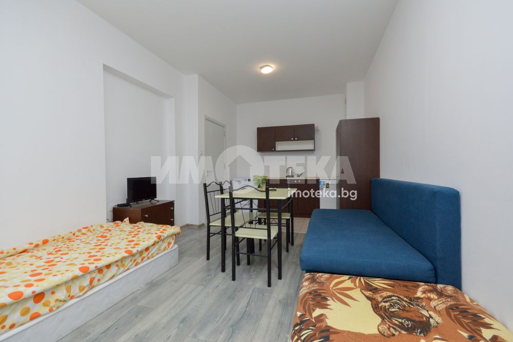 Двустаен тухлен апартамент с площ 58.62 кв.м, състоящ се от дневна с трапезария и кухня,преходна спалня, баня + WC, коридор и тераса.