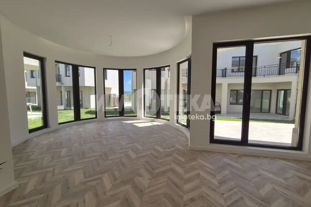 Двуетажна къща в затворен комплекс , разположен по крайбрежието на първа линия море в местността “Лахана“!