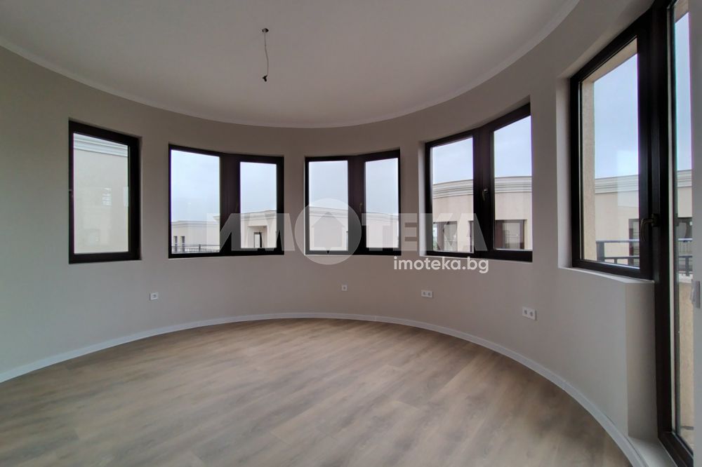 Качвайки се на втория етаж, коридор ви отвежда към трите спални, една от които е разположена в горната част на ротондата. На етажа ще намерите още две бани с тоалетни, две тераси, от които отново се открива великолепна гледка към необятното море и Бургаския залив.