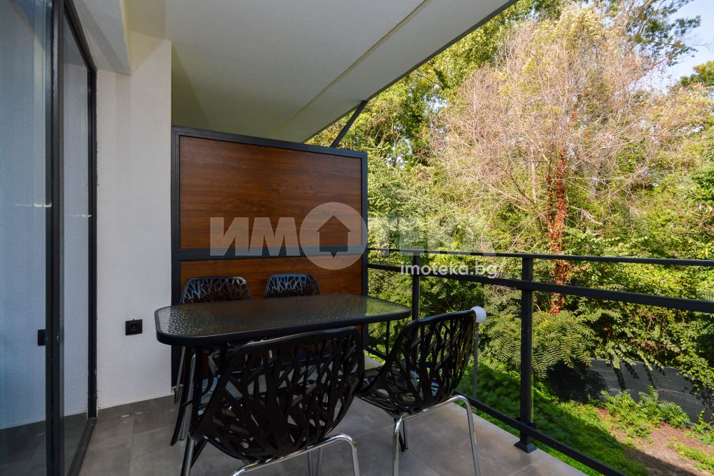 Всеки етаж се състои от три самостоятелни апартамента,които са след основен ремонт и са оборудвани с високо качествени мебели и техника.Всеки апартамент е снабден с климатик,кухненско оборудване,спалня,кът за хранене.На терасите има масички със столове за комфорт и релакс.