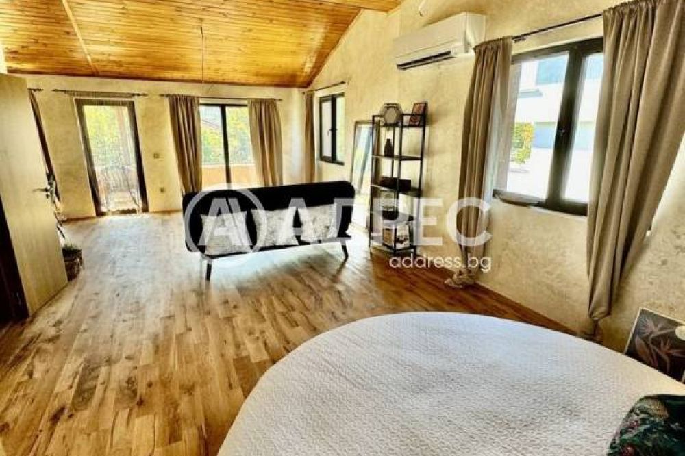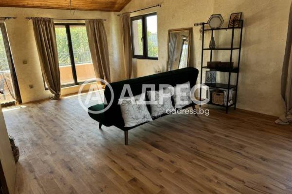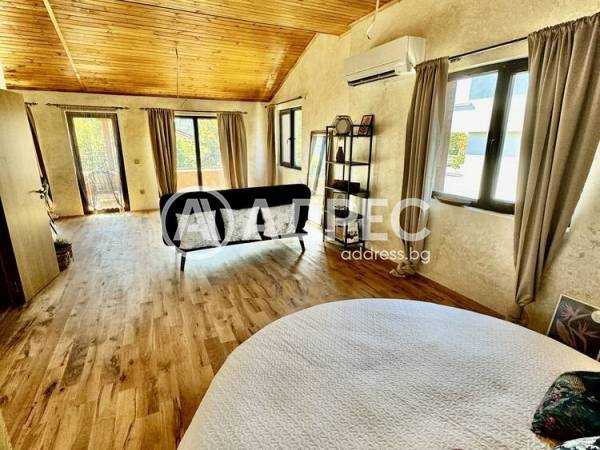 Къщата е с площ 300 кв. м., разполага с приземен етаж с избено помещение, склад, фитнес и баня, два жилищни етажа, обособени като самостоятелни апартаменти и трети апартамент в мансардата.