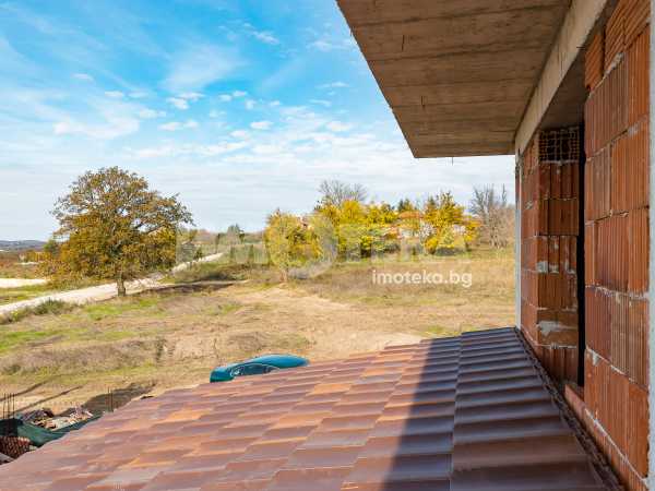 Новострояща се еднофамилна къща в село Приселци, разположена в самостоятелен парцел от 506 кв.м. и завършена с масивна ограда.