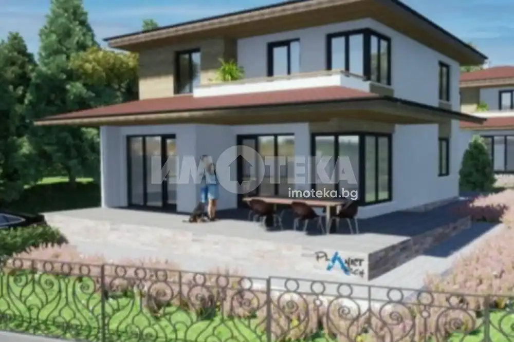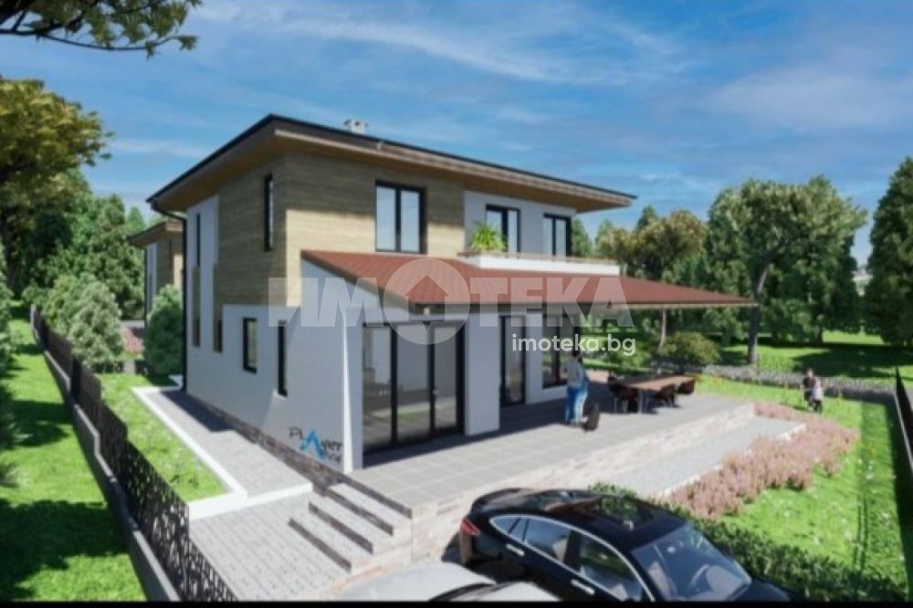 Представям Ви модерен дом с РЗП180 кв.м., разположен върху самостоятеленпарцел от 506 кв.м. със завършена масивна ограда и две паркоместа.
