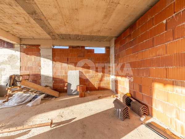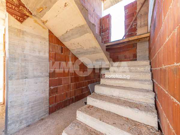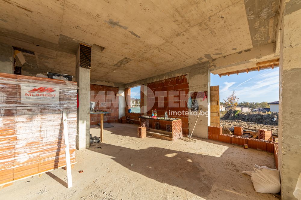 Качество и материали: масивна конструкция с дебелостенни тухли и керамични цигли; фасадна мазилка върху 10 см топлоизолация; ПВЦ дограма - 6-камерен профил с троен стъклопакет; изградени ел. и ВиК инсталации; инсталация за подово отопление, подходяща за термопомпа; вътрепна мазилка и подова замазка; настилки на верандата, терасите и пътеките; тераси с железен парапет, перавази; пречиствателна станция и водомерна шахта.
