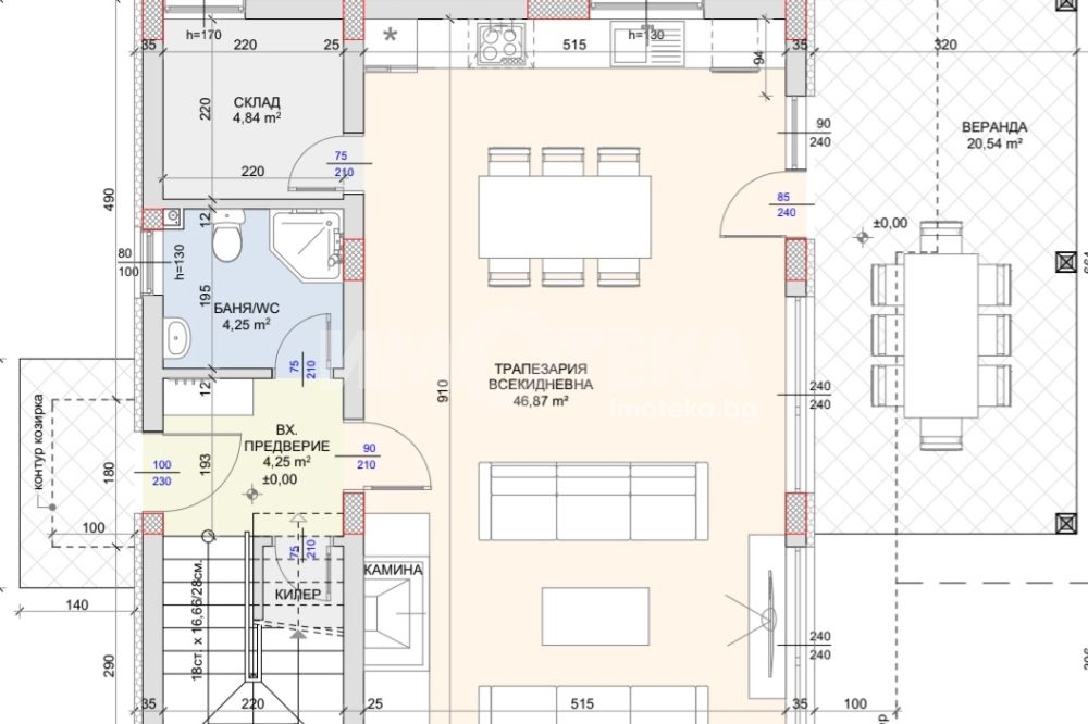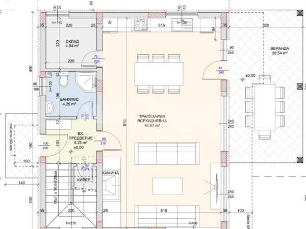 Готова нова самостоятелна двуетажна къща в с. Приселци пред Разрешение за ползване. Къщата е с РЗП 203 кв.м. със следното разпределение: На първия етаж са разположени входно антре, дневен тракт с кухненска част 47 кв, с височина от 2,9 м, веранда 21 кв, склад, баня с тоалетна и стълбищна клетка. От дневната се излиза на просторна покрита веранда.