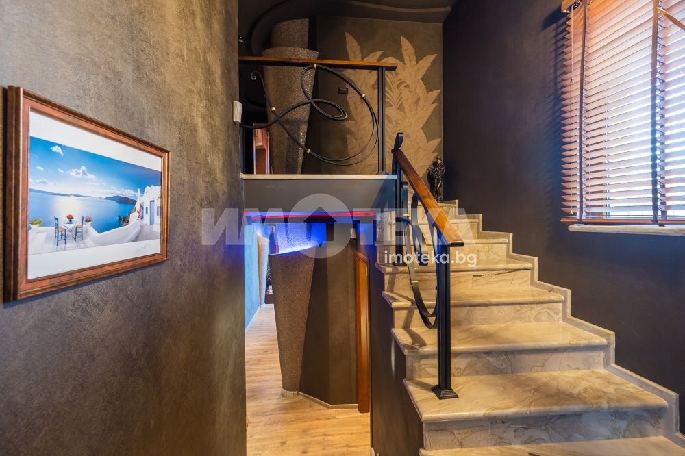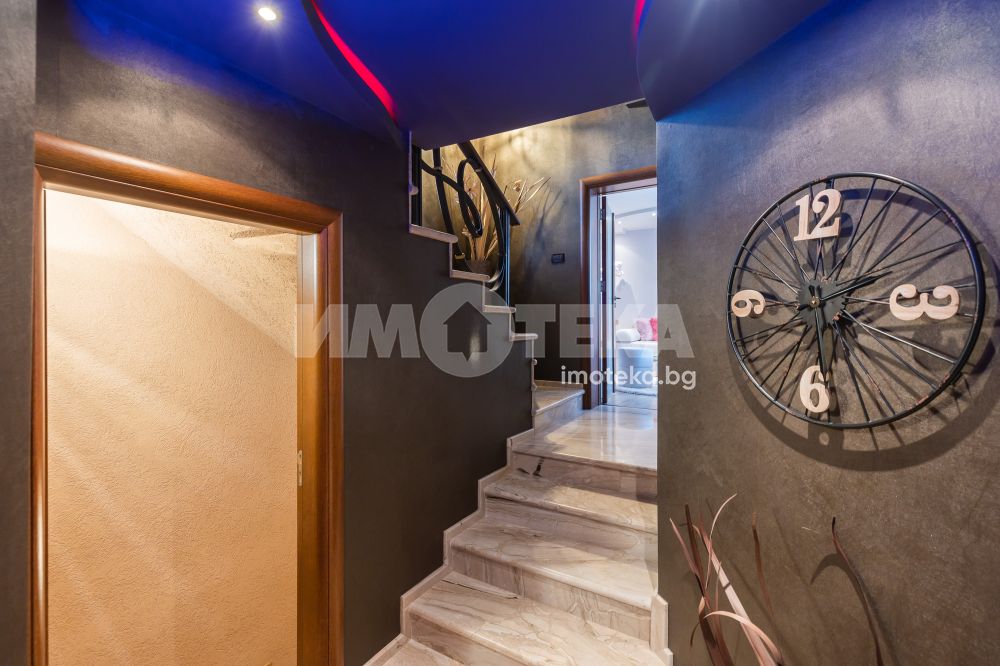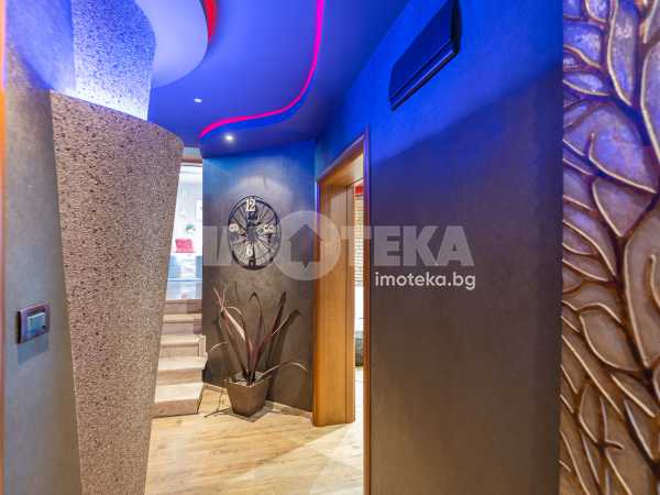 Къщата разполага и отделно с полусутерен с оборудвана кухня, фитнес, гараж, гардеробно, сауна, обзаведена стая с мека мебел плюс библиотека, хидрофорно помещение.