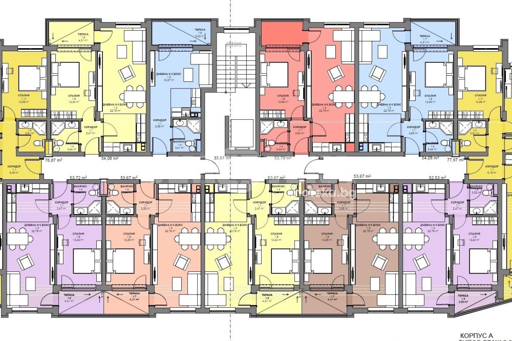 Двустаен апартамент в затворен комплекс в с. Равда. Площ на имота 60,38 кв.м., етаж 4 от 6, асансьор. Състои се от антре, всекидневна с кухенски кът и спаля с обща тераса, баня с тоалетна. ЗАВЪРШВАНЕ ДО КЛЮЧ. Срещу допълнително заплащане има възможност за пълно обзавеждане.Такса поддръжка 10 евро на кв. м. Към всеки имот може да бъде закупено паркомясто от 14 000 до 18 000 евро