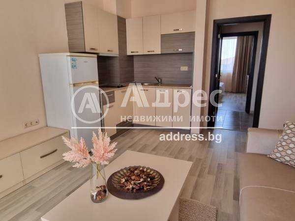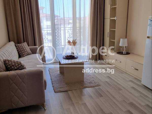 Напълно обзаведен и оборудван тристаен апартамент в Равда, кв. Аурелия. Площ 98 кв.м, ет 5 от 6, асансьор, гледка басейн. Състои се ит коридор, две бани с тоалетни, две спални, хол с кухненски бокс и тераса към трите помещения. Без преходи. Такса поддръжка 12 евро на кв.м.