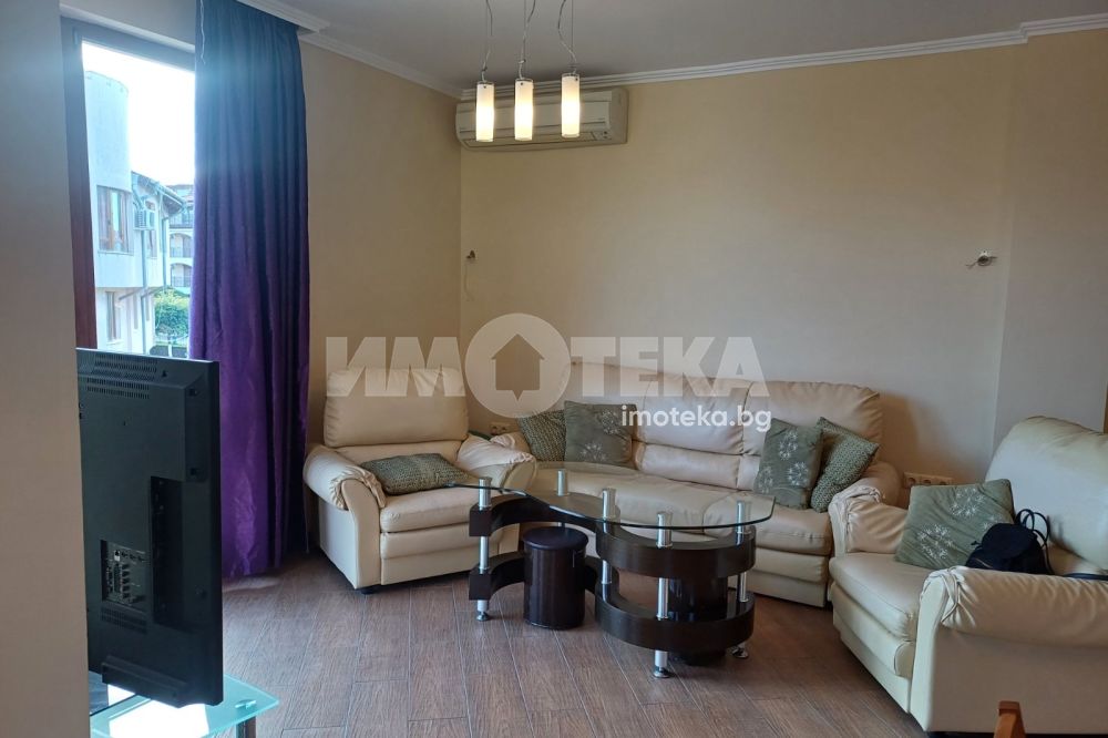 Тристаен апартамент в елегантна малка жилищна сграда с отлични общи части, разположена на втора линия от морето. Комплексът разполага с басейн, барбекю зона и красиво озеленен двор.