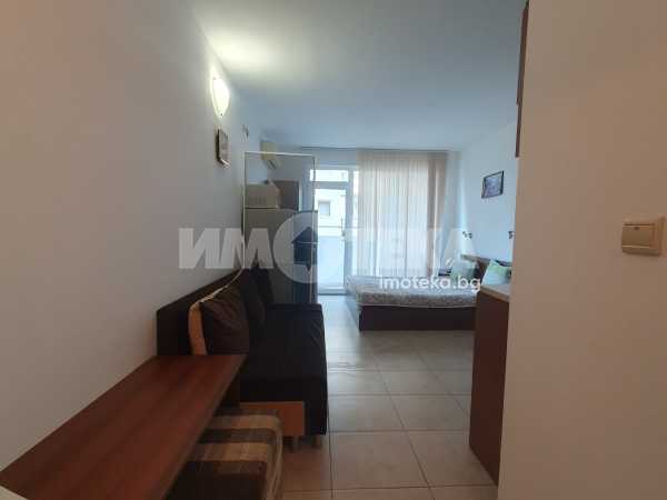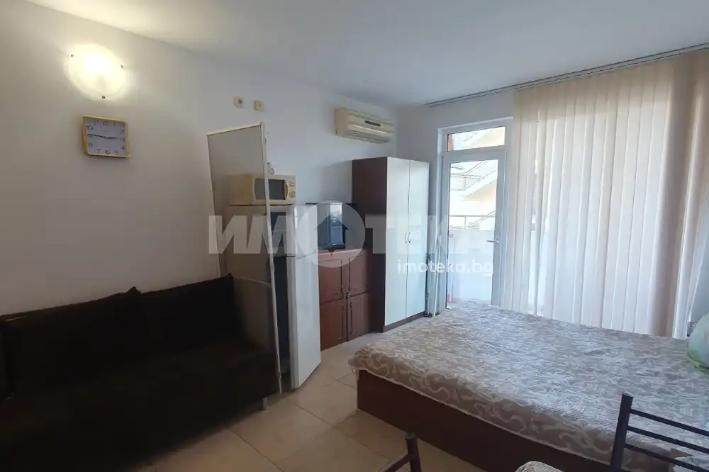 Студио в затворен комплекс в. к. к. Слънев бряг. Имотът е 36 кв. м, етаж 3 от 6, асансьор. Имотът се състои от дневна с кухненски кът, тераса, баня с тоалетна. Напълно обзаведено и оборудвано. Близо до ресторант Джани.