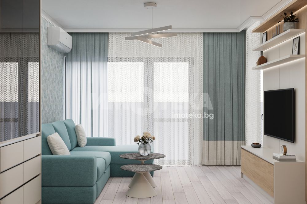 Тристаен апартамент в новостроящ се комплекс в кк Слънчев бряг, пред акт 14. Апартаментът е с площ 108,47 кв.м. на първи етаж. Състои се от хол с кухненски кът, две спални, две тераси, баня с тоалетна .Сградата ще бъде завършена до есента на 2026г. Апартаментите ще се издават напълно завършени и обзаведени. Такса поддръжка 13 евро на кв.м. без ДДС.