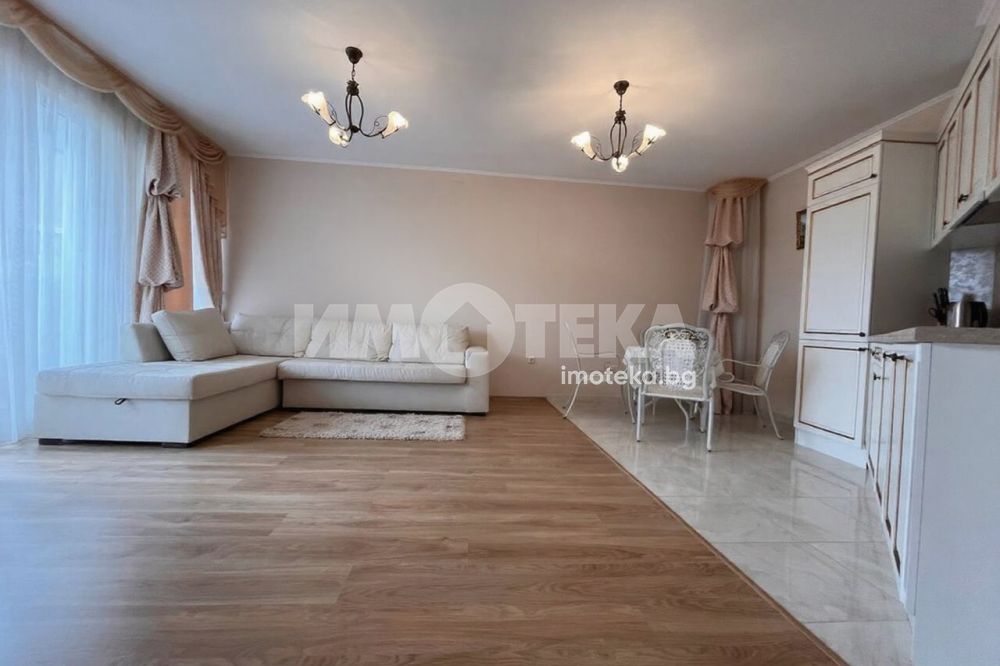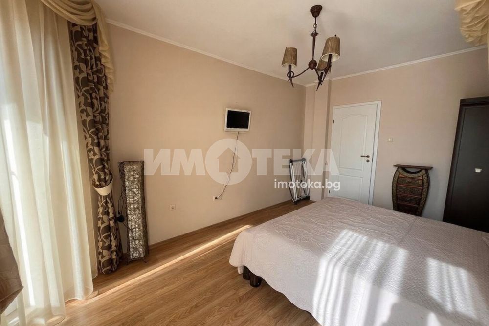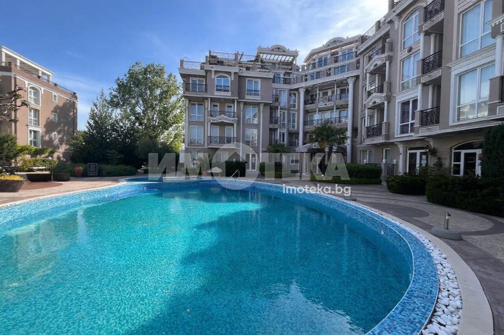 Тристаен апартамент в к. к. Слънчев бряг. Затворен комплекс. Площ на имота 90 кв. м., етаж 3 от 5, асансьор. Състои се от: дневна с кухненски бокс с изход към тераса, две спални, една от които е тераса, баня с тоалетна и входно антре. До плажа 10 минути пеша. Напълно обзаведен и обобрудван.