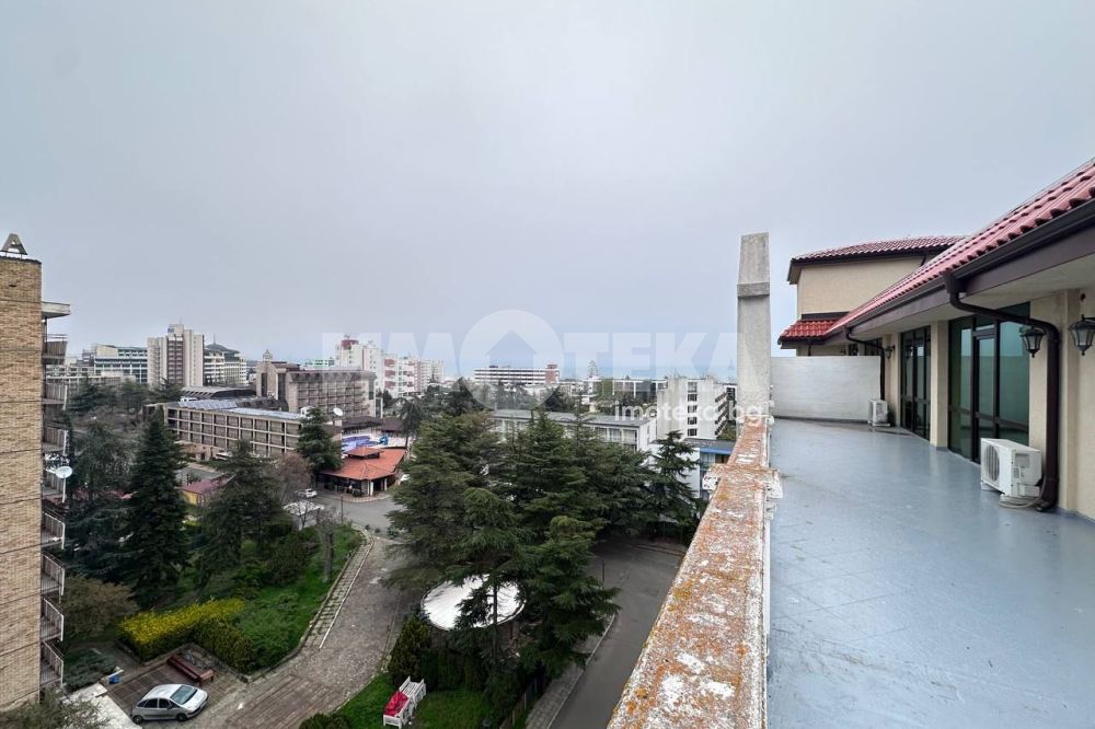 Елегантен тристаен апартамент в кк Слънчев бряг на метри от плажната ивица, в комплекс от затворен тип. Добре дошли у дома на морето! Просторен и светъл апартамент с площ от 120 кв. м., разположен на седми от седем жилищен етаж. Състои се от хол с кухненски кът, две спални, две бани с тоалетна и тераса с морска гледка. Жилището е напълно обзаведено и оборудвано. Отлично място за живеене и почивка в сърцето на курорта.