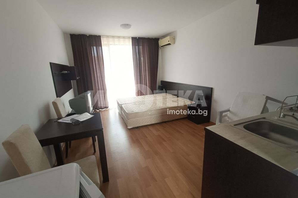 Просторен, изцяло обзаведен едностаен апартамент. Жилището се състои от: хол с кухненски бокс, баня с душ и тоалетна, тераса (с гледка към бассейна). Студиото напълно обзаведено и готово за нанасяне или за отдаване като инвестиционен имот.