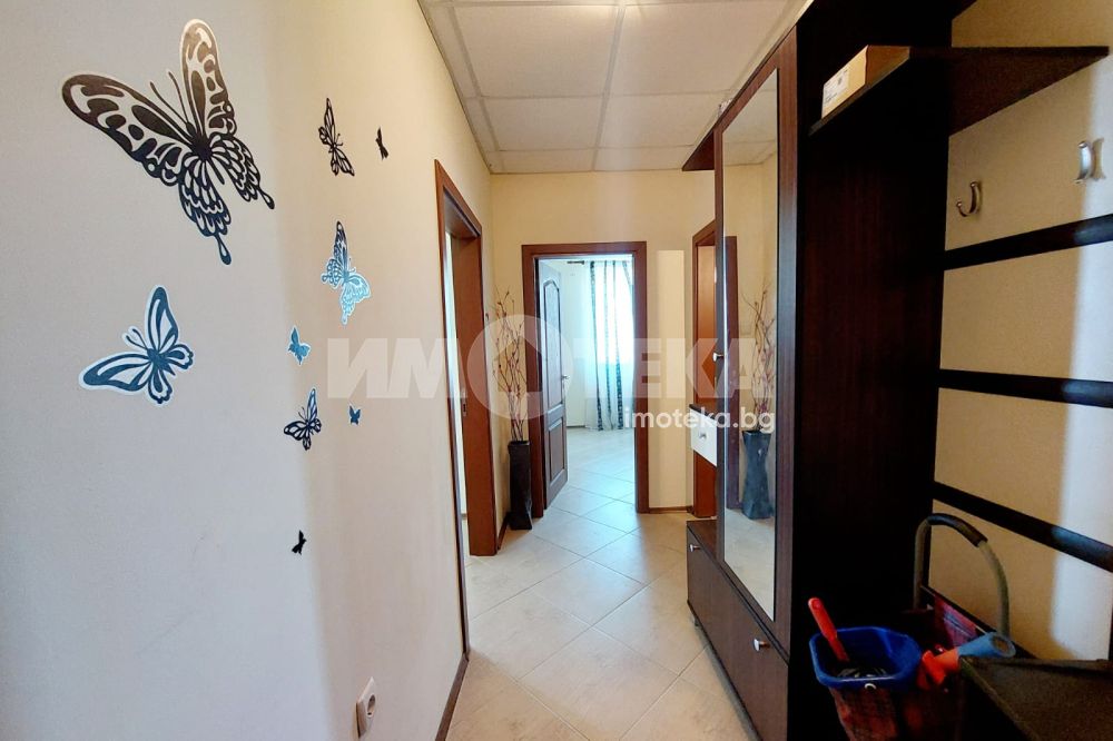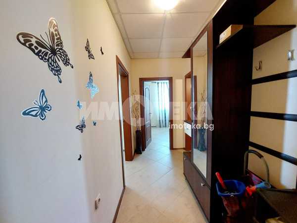 Площ на имота 77 кв. м., етаж 6, асансьор. Състои се от антре - коридор, кухня с трапезария и хол, две спални, баня с тоалетна и тераса. Напълно обзаведен и оборудван. Битов ток! На метри от супермаркет ММ. Наблизо детска градина, детска и спортивна площадка, Аквапарк.