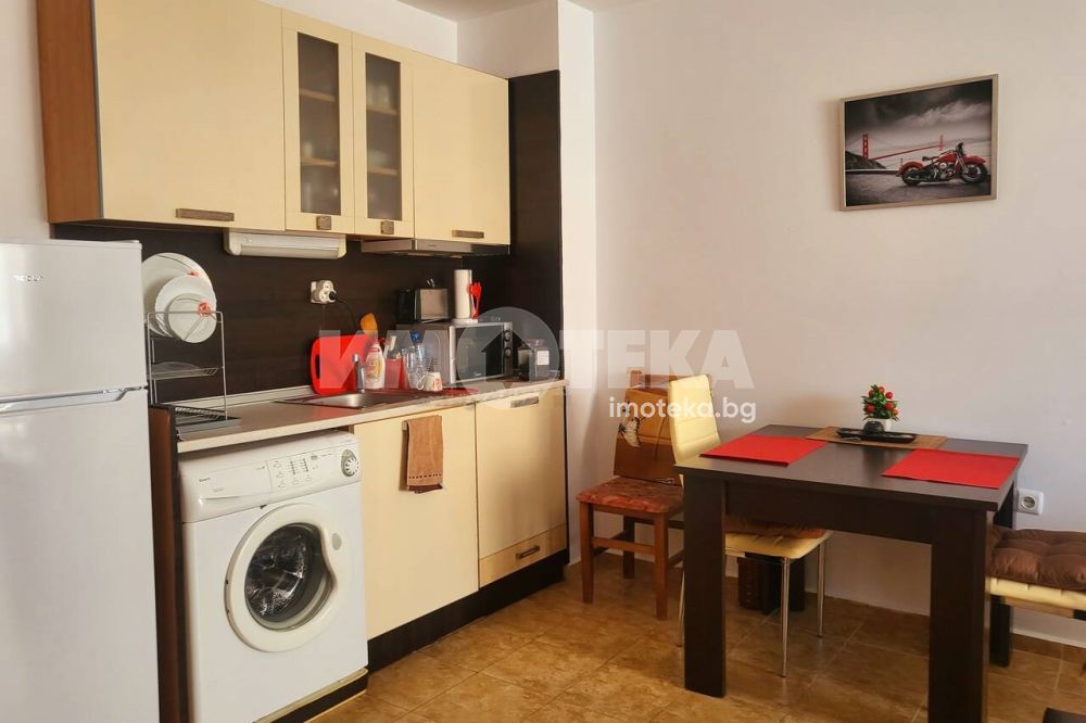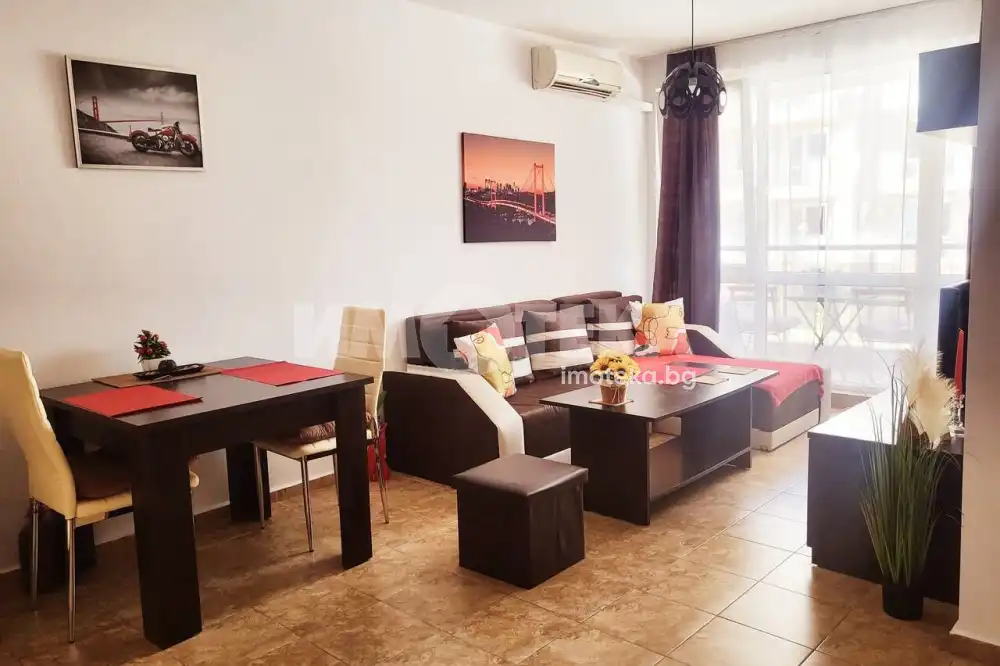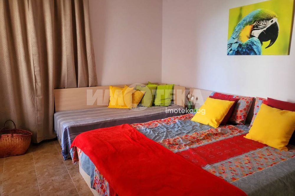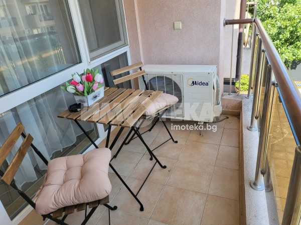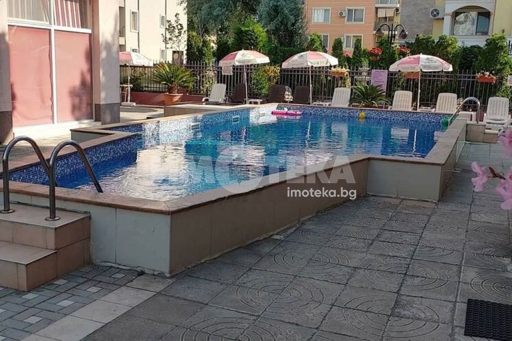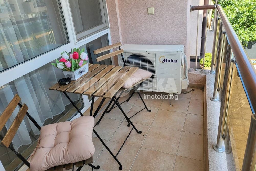 Апартаментът е много удобен и напълно обзаведен след основен ремонт. Намира се близо до ресторант Джани на тихо и спокойно място. Състои се от хол и кухня в едно, спалня, баня и тераса на която се излиза и от двете стаи. Комплексът разполага с басейн който е винаги чудесно поддържан. Северен, много прохладен и икономичен, тъй като почти не се налага включване на климатик. Общите части са целогодишно чудесно поддържани и сградата е в перфектно състояние както отвън така и отвътре. Поддръжката е изключително изгодна само 200лв на година.