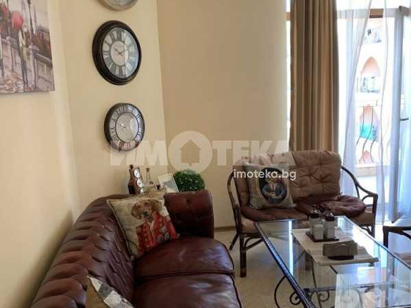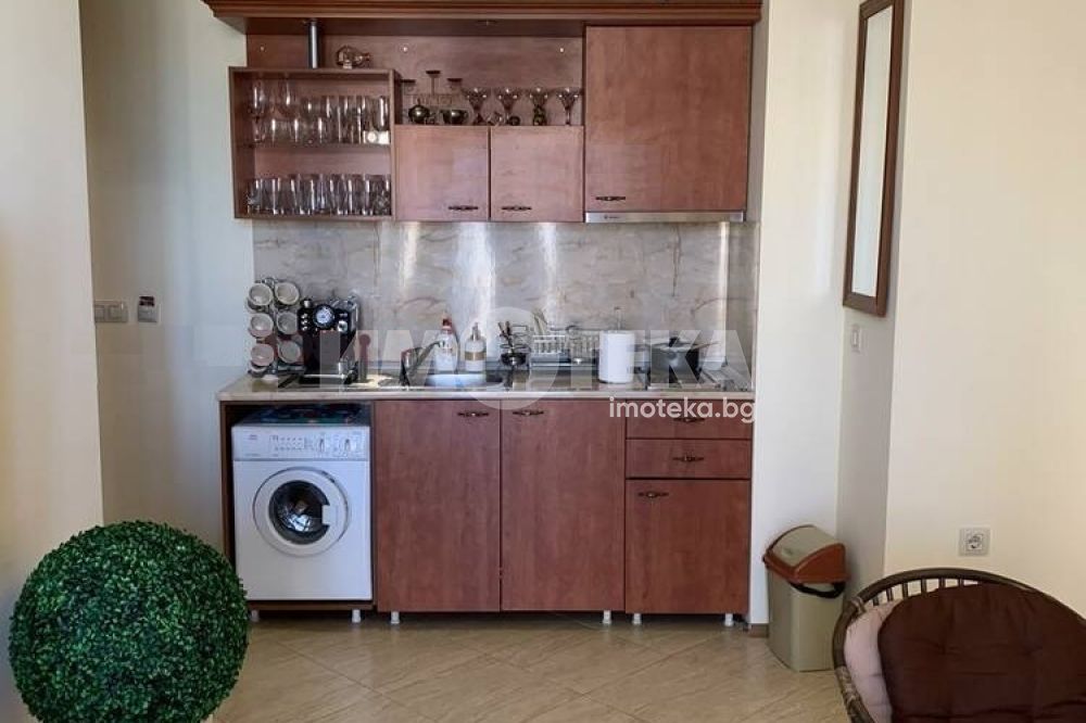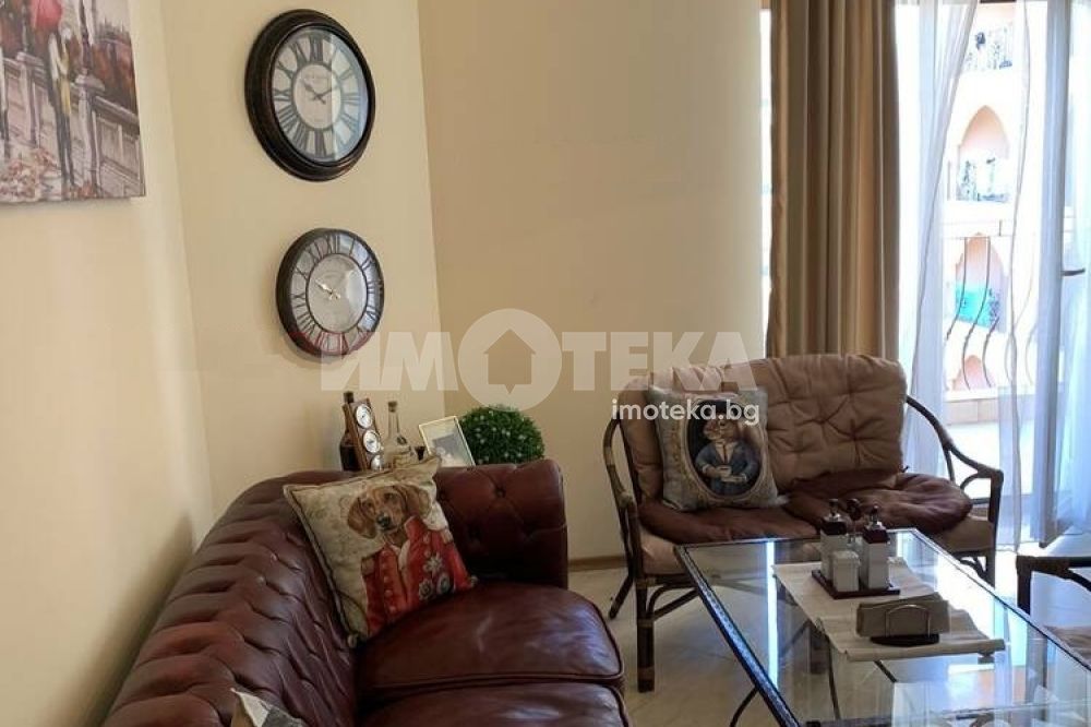 Двустаен апартамент в затворен комплекс в к.к Слънчев бряг. В непосредствена близост до гр.Несебър. Площ на имота 71 кв. м., етаж 3 от 6, асансьор. Състои се от антре, спалня, всекидневна с кухненски бокс, баня с тоалетна и тераса. Апартаментът е наапълно обзаведен и оборудван. ТАКСА ПОДРЪЖКА 9 евро на кв. м без ДДС.