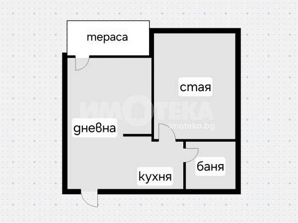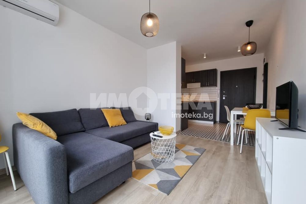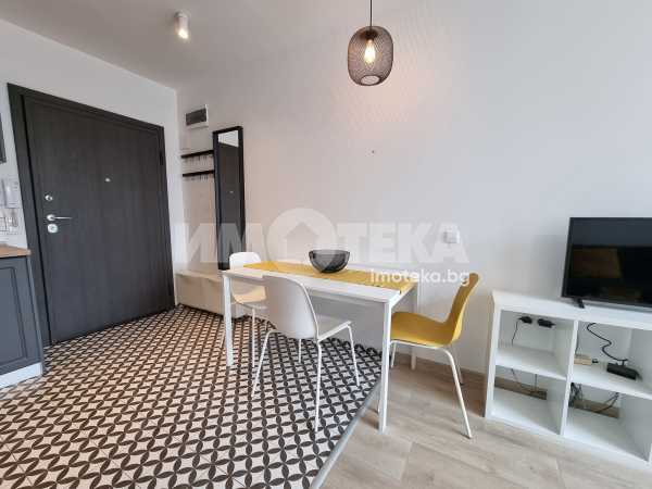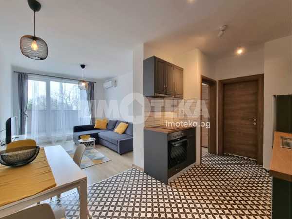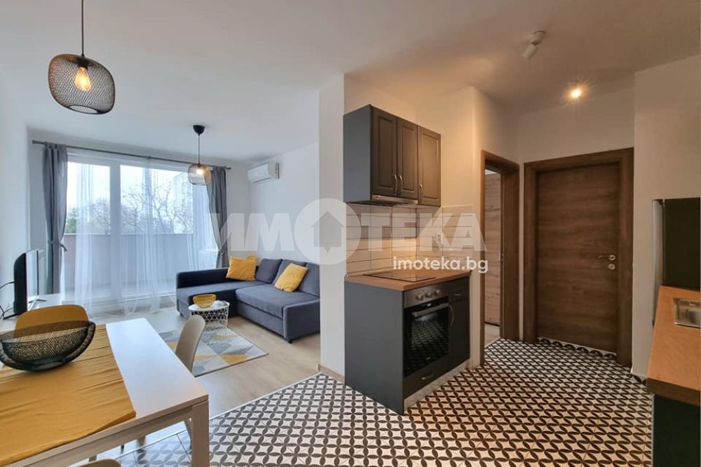 двустаен обзаведен апартамент, състоящ се от хол с кухненски бокс и тераса ,спалня с френски прозорци,баня с WC с обща площ от 60 кв.м.