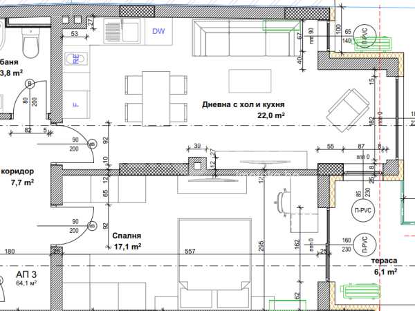 - Седем двустайни, шест тристайни, един четиристаен апартамент.