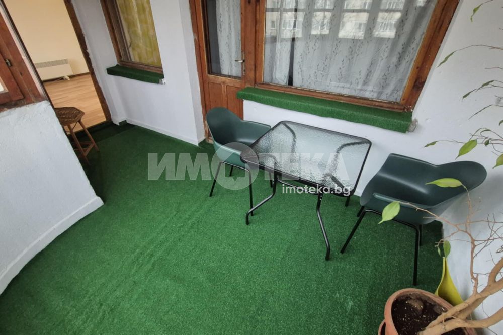 Предлагаме Ви двустаен обзаведен апартамент в жк. Банишора. Състои се от входно антре, просторен хол, спалня с тераса, кухня с остъклена тераса и с излаз към хола, баня с тоалетна. Отопление на ток, вода на бойлер.